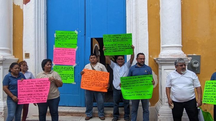 Unos 20 trabajadores sindicalizados del Instituto Nacional de Antropología e Historia (INAH) se manifestaron nuevamente debido a la falta de cumplimiento del contrato colectivo con la Secretaría de Cultura pues no les han entregado equipo de trabajo, respeto a las solicitudes de promociones por grado académico, también exigen a la Secretaría de Hacienda y Crédito Público (SHCP) mayores recursos en Anteproyectos del Presupuesto de Egresos de la Federación para 2024, la creación de al menos 100 plazas para atención de visitantes por el Tren Maya, entre otros.