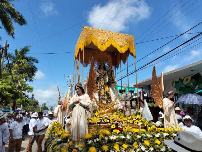 Encabezados por el rector del Santuario Mariano Diocesano de la Virgen del Carmen, presbítero Francisco Verdejo Aguilera, los fieles carmelitas, muchos de los cuales llegaron en combis y autobuses procedentes de diferentes municipios de Puebla, Tabasco, Veracruz, Yucatán, Quintana Roo y de la capital del estado, Campeche, acompañaron la imagen en su recorrido por las calles 22, 35 y 56.
