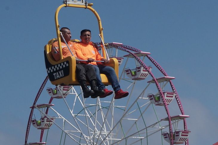 Representantes de los medios de comunicación y elementos que integran a ambos organismos de Protección Civil, subieron a las atracciones principales, uno de ellos que tiene una altura de casi 50 metros y trata de un mecanismo giratorio en rotación y traslación el cual no es recomendado para menores de 12 años, o en su caso también restringido a personas con una estatura muy baja debido a la fuerza generada durante el movimiento.