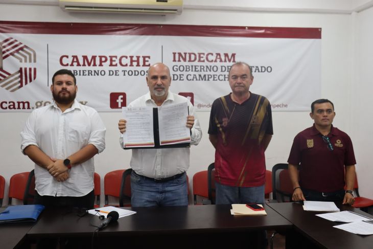 En rueda de prensa realizada en las instalaciones del Instituto del Deporte de Campeche (Indecam), el director general del Indecam, Francisco Menéndez Botanez, junto a los directores de Desarrollo del Deporte, Luis Turriza Silva y de Alto Rendimiento, José Aguilar Baceliz, así como del jefe de la Unidad de Deporte Federado, Ángel Meza Poot, presentaron las convocatorias del Premio Estatal del Deporte y Mérito Deportivo 2023.