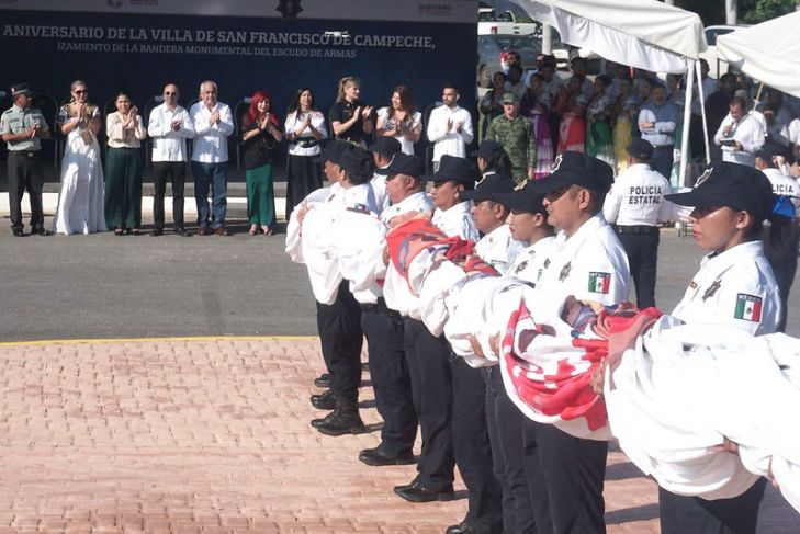 La gobernadora, Layda Sansores San Román, encabezó en la mañana la ceremonia de conmemoración del 483 aniversario en un evento celebrado al pie del asta bandera monumental en la avenida Costera donde se izó el pabellón con el Escudo de Armas del Estado.