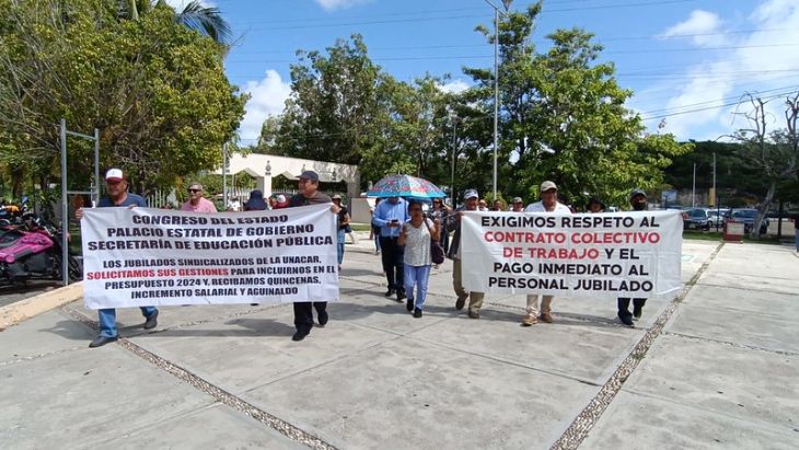 Ante la falta de pago -de siete meses- a los jubilados y pensionados de la Universidad Autónoma de Carmen (Unacar), estos se manifestaron en las instalaciones de la Secretaría de Educación (Seduc) de Campeche para exigir la intervención del organismo estatal, pues señalan que se ha mantenido omiso ante los reclamos de los más de 400 ex trabajadores activos de la máxima casa de estudios de Carmen.