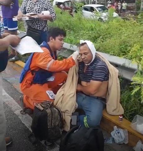Tras el accidente el conductor de la unidad resultó con una herida sangrante en la cabeza, por lo que fue auxiliado por paramédicos de una empresa que realiza trabajos en la zona, en tanto llegaban al lugar elementos de las organizaciones de socorro.