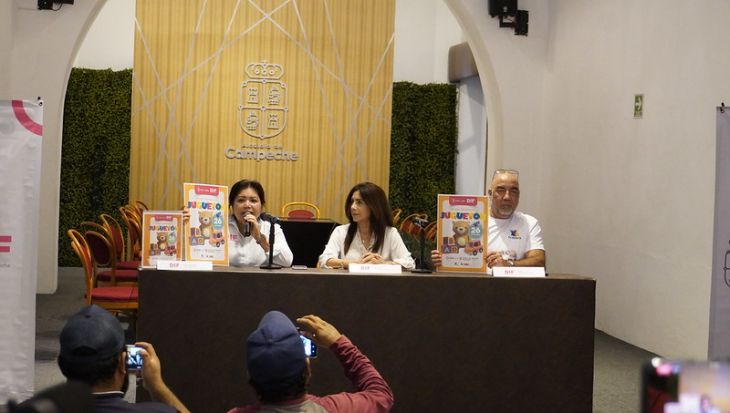 Así lo anunció en rueda de prensa la presidenta del Patronato del Sistema DIF Municipal Campeche, Sara Evelin Escalante Flores, acompañada de la directora general de la institución, María Asunción Caballero May, y el enlace de TV Azteca Campeche, Sabino Cáceres Echeverría.
