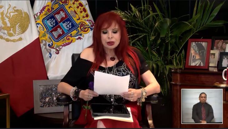 Al no poder hablar de Alejandro Moreno Cárdenas, presidente nacional del Partido Revolucionario Institucional (PRI), y al evitar mencionar a Eliseo Fernández, ex alcalde de Campeche, la mandataria estatal hizo referencia a esta controversia generada por Paola Castillo, artista de conocida televisora nacional, pues primeramente la artista intentó empeñar la corona que le entregan durante el evento que fue contratada, pero le dijeron no tiene valor económico en la empresa donde la llevó a valuar.