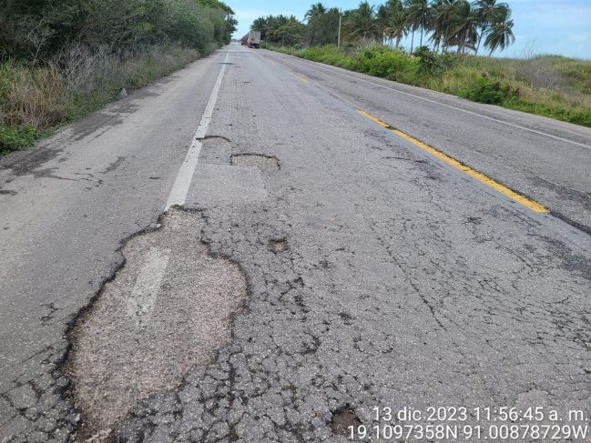 Explicó que la carretera 180, en el tramo Puerto Rico-Champotón, muestra un alto grado de deterioro, lo cual ha sido dado a conocer por la mandataria estatal, a las autoridades federales.