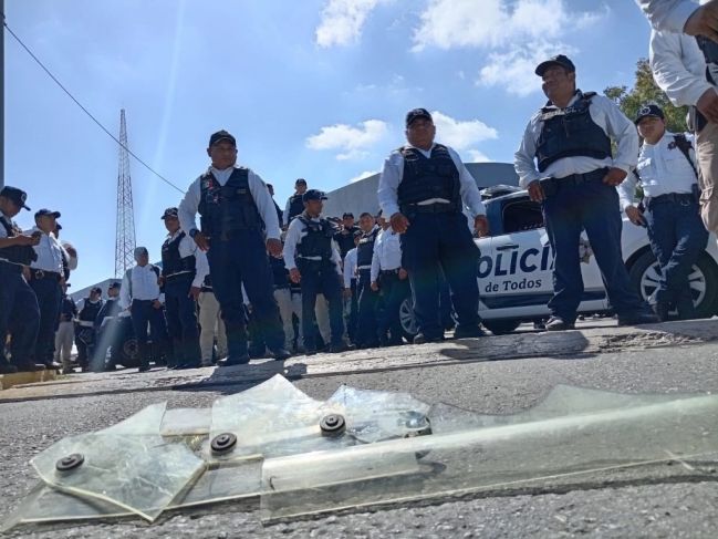 Decenas de elementos policiacos tomaron esta mañana las instalaciones de la Secretaría de Protección y Seguridad Ciudadana (SPSC) para exigir la renuncia de su titular, Marcela Muñoz Martínez, la dotación de mejores equipos, la dignificación de los cuerpos de seguridad y mejora salarial; al menos 400 agentes cerraron todos los accesos al edificio y colocaron un camión como barrera de contención ante el temor de que fuerzas federales intervengan en el conflicto.