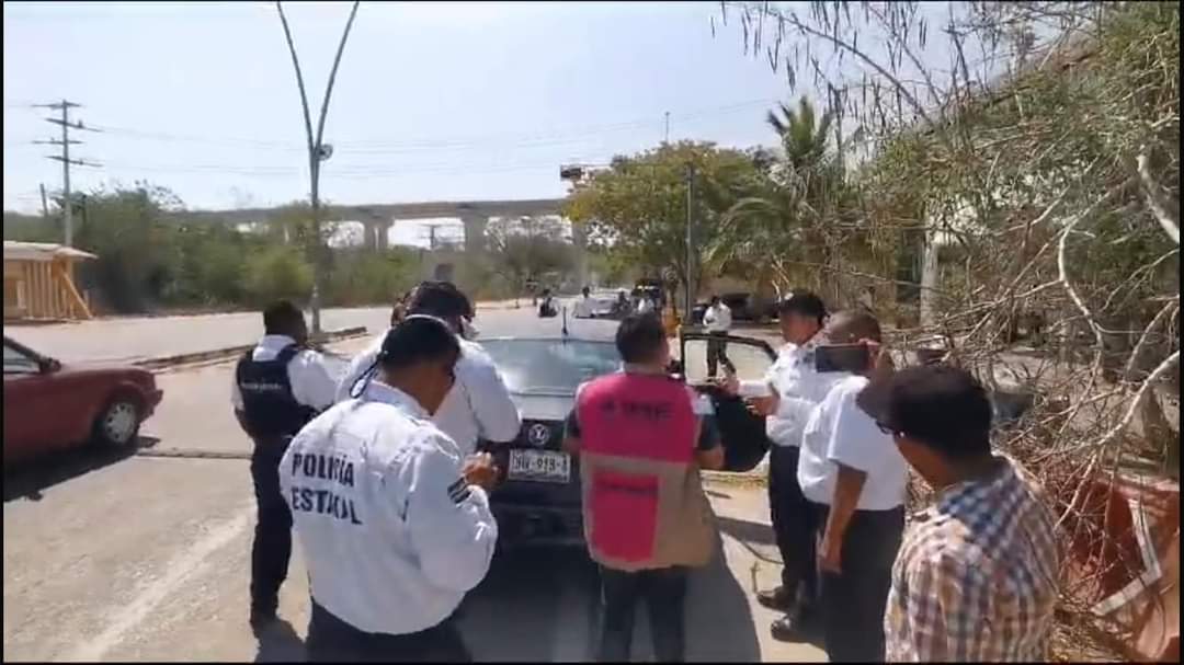 Los elementos de la Policía Estatal señalaron que en ese punto de seguridad es el segundo vehículo retenido, el primero fue una camioneta propiedad del Instituto Electoral de Estado de Campeche (IEEC) con los logos del organismo electoral despegados, pero la camioneta sí pudo acreditarse como propiedad del órgano.