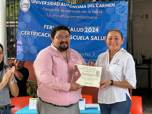 Asimismo, se reconoció a los alumnos de la Facultad de Ciencias de la Salud, Licenciatura en Enfermería, de la Universidad Autónoma del Carmen, por participar en la realización de estas actividades.