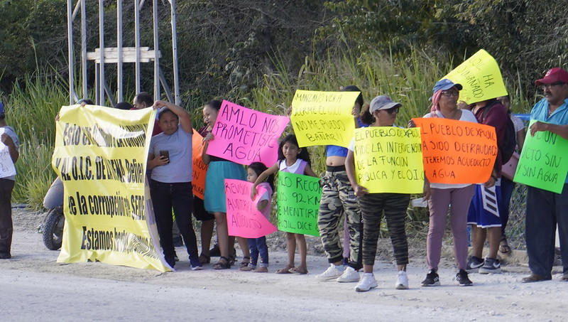 Pese a la inversión millonaria en la obra del acueducto López Mateos-Xpujil, ciudadanos de Calakmul denunciaron -en una publicación del gobierno de Campeche sobre dicho proyecto- que el agua no ha llegado a ninguna de las comunidades, les siguen llevando el vital líquido en pipas, a pesar de que la obra ya fue inaugurada por el presidente de México, Andrés Manuel López Obrador. Resalta que en el 2019, cuando López Obrador consultó la obra del Tren Maya con los pobladores, el jefe del ejecutivo federal prometió que el agua llegaría antes del tren y ya se espera que el tramo 7 sea inaugurado a principios de septiembre. En este sentido, los pobladores de distintas comunidades han cerrado carreteras en ocasiones anteriores a modo de presión, y para los eventos del presidente les han bloqueado el acceso pues llegan a las reuniones gritando y alterando el orden, por lo que no permiten que el presidente se entere de esta situación. Para las siguientes semanas se esperan nuevamente bloqueos; uno de los quejosos es José Contreras, ex candidato a la alcaldía de Calakmul por el Partido Revolucionario Institucional (PRI), quien asegura que lejos de sólo crear polémica, comparte y opina de estas supuestas acciones del gobierno estatal y federal, pero lo hace en grupos de Facebook del municipio, “mientras las burlas y críticas salen automáticamente por la molestia de la gente”, expuso. En las imágenes del supuesto servicio de agua, los pobladores aseguran se trata de fotos de archivo que no corresponden a las comunidades donde anuncian que ya llega el agua entubada y añaden que las autoridades locales le mienten al presidente. Hoteleros como Baltazar González o Silvia Serrano se han quejado constantemente con las autoridades federales y con los organismos empresariales para buscar soluciones urgentes a esta situación, ya que sospechan que la premura para hacer entubados de pozos y bombas sea sólo para beneficiar al hotel Tren Maya en Calakmul y los ponga en más aprietos a estos, pues dicho centro de hospedaje estará en una zona privilegiada y ya lo consideran competencia desleal. Mientras tanto, la Comisión de Agua Potable y Alcantarillado del Estado de Campeche (CAPAE) está buscando la solución a la distribución del agua a través de sistemas de entubado que permitan conectar el bombeo del vital líquido hacia las comunidades. En enero pasado, el presidente Andrés Manuel López Obrador y la gobernadora Layda Sansores San Román develaron la placa que puso en operación el acueducto Adolfo López Mateos–Xpujil, que permitirá el suministro de 230 litros de agua por segundo en beneficio de más de 71 mil habitantes de la región y garantizarlo por los próximos 30 años, conforme aumente la demanda por la llegada de mayor turismo con la próxima entrada en operaciones del Tren Maya. Edición: Estefanía Cardeña