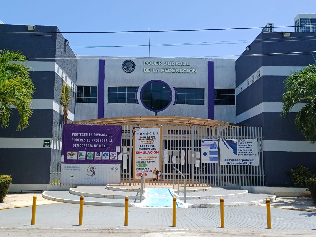 Hasta el momento, los cerca de 50 empleados del Poder Judicial de la Federación en Carmen sólo colocaron lonas en los accesos del recinto, sin haber dado un pronunciamiento al respecto.