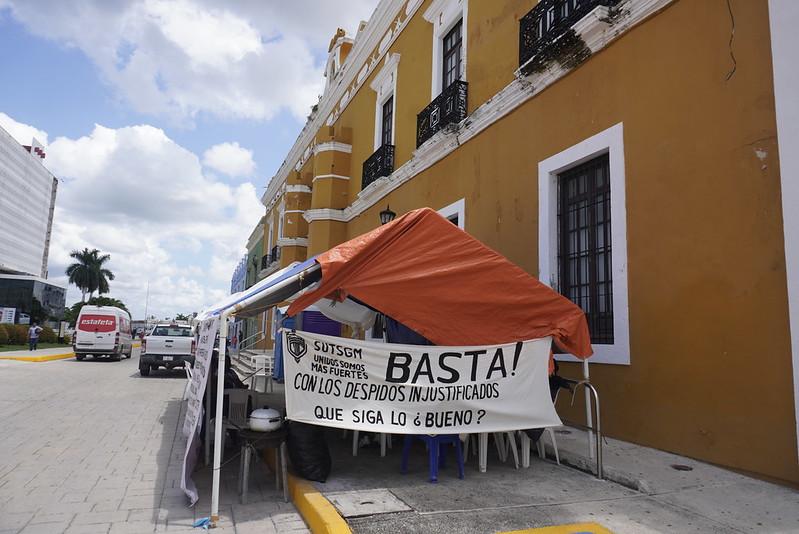 A tres días de manifestaciones en las afueras del Palacio Municipal de Campeche, la síndica Ana Mex Soberanis aseguró que ya son más de 100 empleados sindicalizados despedidos, más los que se han dado de baja durante los tres años del actual gobierno municipal, y especula que se realizarán más despidos debido a la privatización de los servicios públicos.