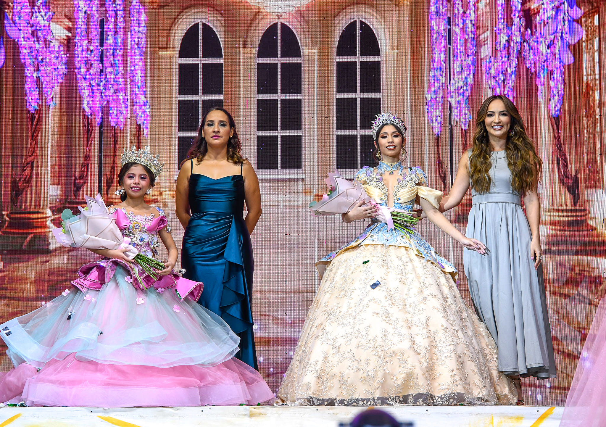La alcaldesa Biby Rabelo acompañada de la titular de Cultura, Ariadna de Córdova Vega, ciñeron las coronas que las acredita como Linda San francisqueña y reina de los festejos de San Francisco 2024 a Luna María Chi Quijano y Angeline Karem R. de la Gala Maín, quienes recibieron sendos ramos de flores de parte del DIF Municipal.