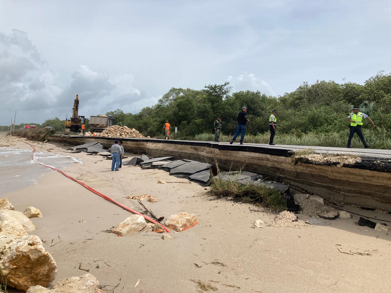 Calles encharcadas como resultado de las lluvias intensas registradas, deslave carretero y daños en el muelle turístico de Isla Aguada, fueron algunos de los daños provocados por el huracán Miltón en su paso por las costas del municipio de Carmen.