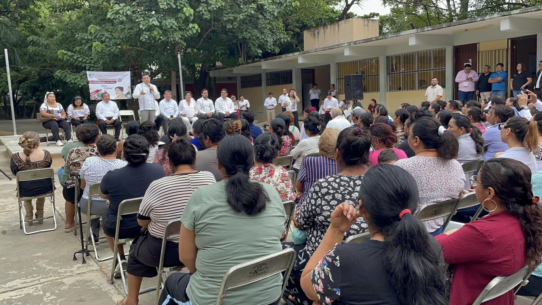 El delegado del Bienestar en el estado, José Antonio Cardozo Rivero, encabezó el evento acompañado del secretario de Educación, Víctor Sarmiento Maldonado, la titular de Becas Benito Juárez, Carmita Duarte, el subsecretario de Educación Básica y Normal, Roberto Herrera Maas y el director de Educación Básica, Marco Antonio Yam Camacho.