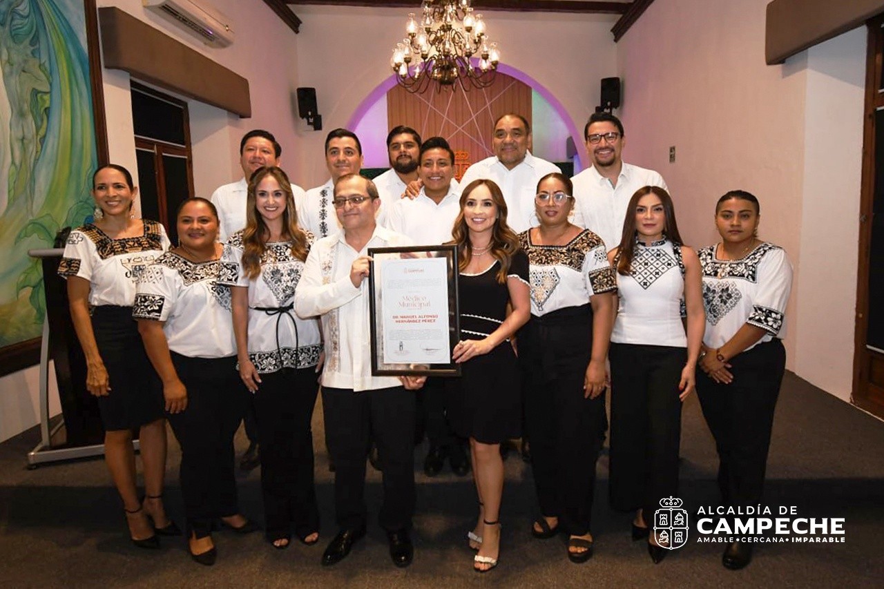 El doctor Manuel Alfonzo Hernández Pérez recibió de manos de la alcaldesa de Campeche, Biby Rabelo de la Torre, el Reconocimiento Médico Municipal edición 2024 por su honorabilidad, trayectoria profesional, prestigio académico, ética y labor humanista en beneficio de la ciudadanía del Municipio de Campeche, en el marco de la Segunda Sesión Solemne de Cabildo.
