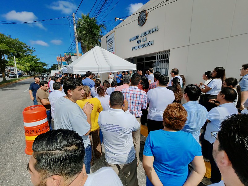 Con motivo de la protesta nacional en contra de la Reforma Judicial que seguía su curso debido a las controversias de impugnación en la Suprema Corte de Justicia de la Nación (SCJN), diversas asociaciones civiles -como Más Vida, más Familia y el Frente Cívico Nacional- se manifestaron pacíficamente en las afueras de los juzgados de distrito con sede en la ciudad de Campeche, esto como símbolo de apoyo a jueces y magistrados del Poder Judicial.