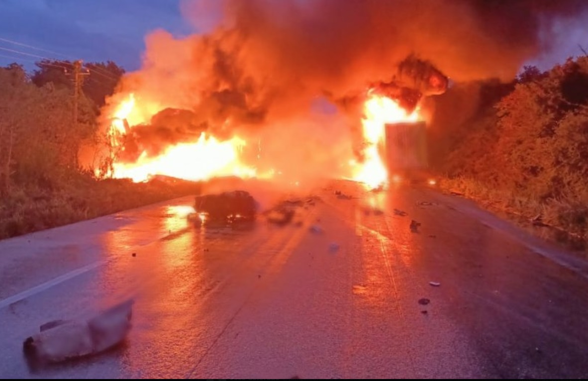 Este jueves se registro un choque frontal entre dos tractocamiones de alto tonelaje, uno de ellos una pipa cargada de combustible, cerca del kilómetro 065+500 de la carretera Champotón-Escárcega; dos personas perdieron la vida, un menor de edad entre ellos.