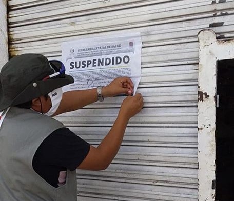 Como resultado de estas acciones, aplicaron la Suspensión Total Temporal de actividades a una tienda Dunosusa, ubicada en la calle 16, del Centro Histórico de Campeche, colocando los sellos de suspensión 013 y 021, por incumplimiento de medidas preventivas del COVID-19.