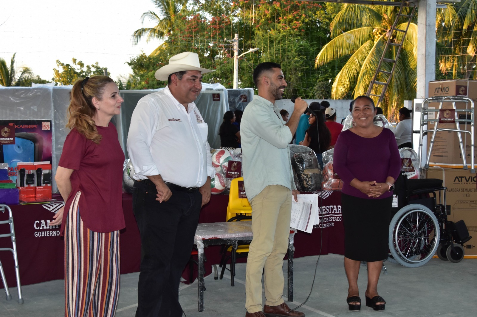 El secretario de Bienestar, Esteban Hinojosa Rebolledo, encabezó una gira de trabajo en la localidad de La Esmeralda, municipio de Candelaria, donde hizo entrega de apoyos en materia de salud, fomento al deporte, sentido comunitario y emprendimiento.