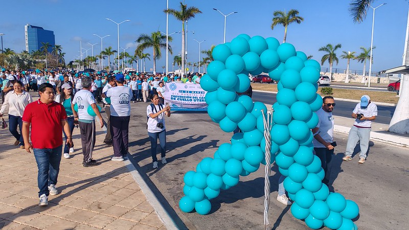 Para fortalecer la detección oportuna del cáncer cervicouterino en las campechanas, e impulsar acciones de promoción y prevención con estilos de vida saludables, la secretaria de Salud, Josefa Castillo Avendaño, encabezó la caminata de concientización por el Día Mundial de la Prevención del Cáncer de Cuello Uterino.