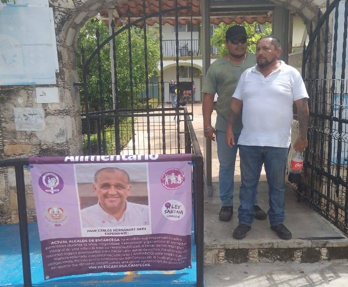 Resaltaron tres imágenes en las lonas, el consejero jurídico del Estado Juan Pedro Alcudia Vázquez, a quien el Instituto Electoral del Estado de Campeche (IEEC) le puso medidas cautelares por violencia política en razón de género, y por ende no debería ocupar un cargo público; así como el alcalde de Escárcega Juan Carlos Hernández Rath, a quien acusan de deudor alimentario de una infancia.