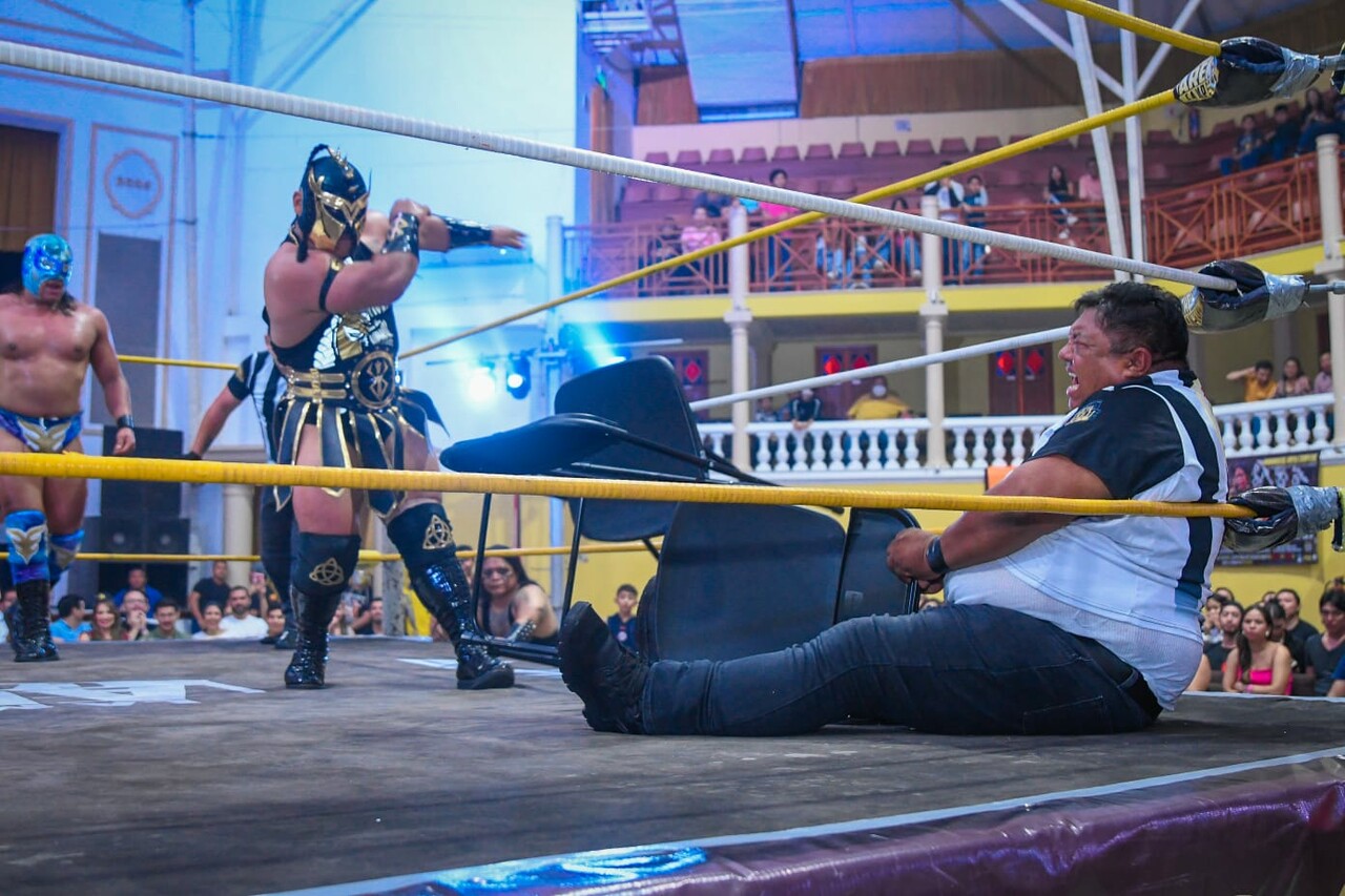 El ambiente fue subiendo de tono con la aparición para ser el réferi de la segunda lucha, desde la Monumental Arena Campeche, el gran Chino Cruz, quien fue el encargado de cuidar la batalla entre los técnicos Technovolt y Rinorock, la dupla tecnológica, quienes se midieron a Rey Antares y Evil Machine.