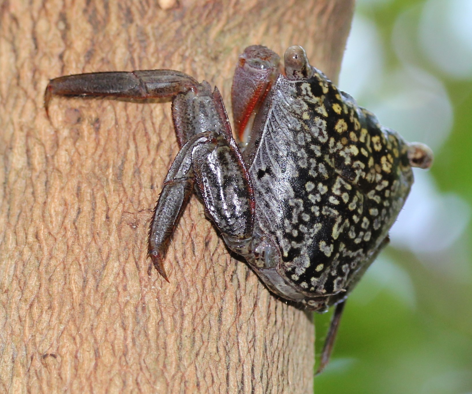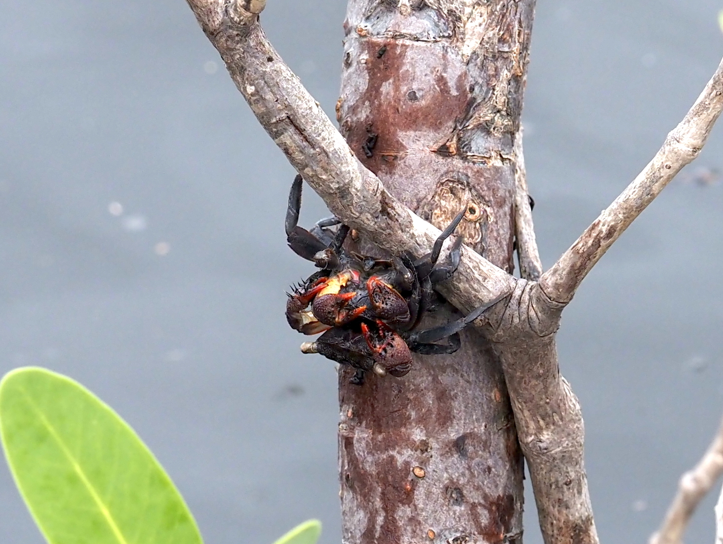 Tiene una gran capacidad para trepar y vivir en los árboles, además que su color marrón, les permite camuflarse entre el sistema lagunar y pantanos, además de tener una importante labor ambiental, al reciclar los nutrientes del manglar, mejorando con ello la salud de estas áreas, se trata del cangrejo de mangle o Aratus pisonii.