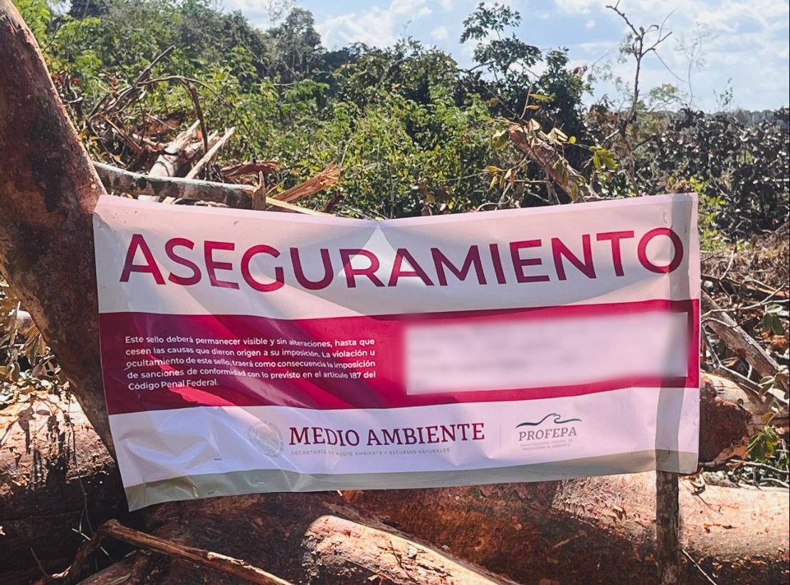 Personal de la Profepa, en coordinación con la Guardia Nacional, acudió, el pasado 13 de febrero, a una visita en los terrenos forestales; durante el recorrido se constató el cambio de uso de suelo en una superficie aproximada de 52 hectáreas, donde la vegetación característica de selva mediana subperennifolia había sido removida. Al no acreditarse la autorización federal requerida para este tipo de actividades en terrenos forestales, se impuso la clausura total temporal del predio intervenido, colocando los sellos correspondientes para impedir la continuación de los trabajos.