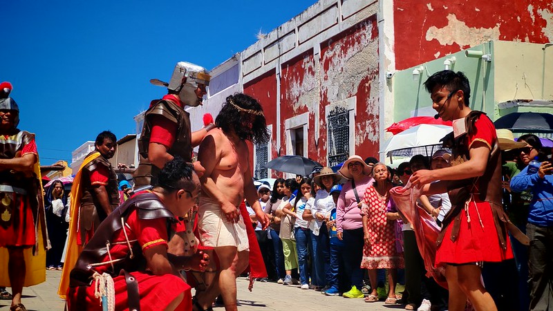 En las calles de Santa Ana, Samulá, del Centro Histórico, San Román y Santa Lucía, se escuchaban latigazos y los gritos de los guardias romanos: “Camina, levántate”. Los fieles católicos observaban sin intervenir; incluso algunos mostraban cara de asombro e indignación. La representación del Viacrucis sigue cumpliendo su objetivo: mostrar el sufrimiento de Cristo por sus hermanos.