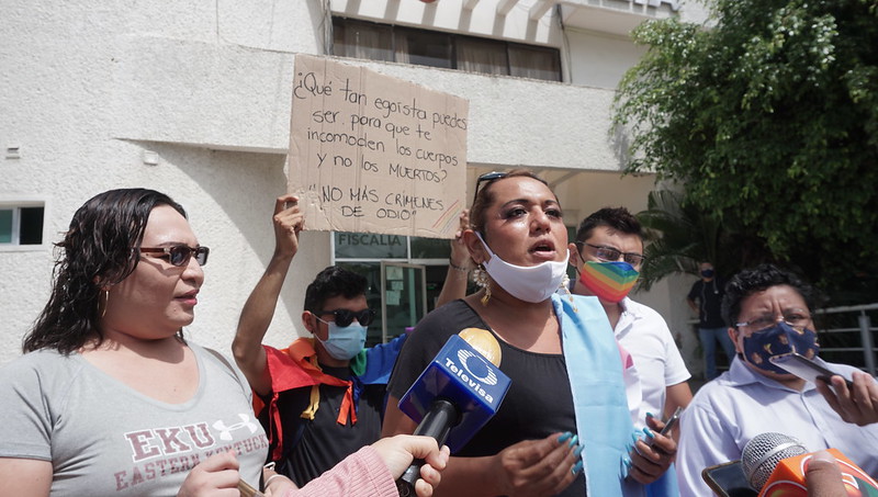 Acompañada de Diego Cervera Balan, presidente de Unidos por una Vida Digna AC, así como otros integrantes de la comunidad, Alonzo Aguilar denunció que es una demanda a nivel nacional de los grupos que integran a la comunidad en el país, ejemplificando que recientemente hubo asesinatos en los estados de Veracruz y Morelos, donde los casos no llevaron un proceso adecuado.