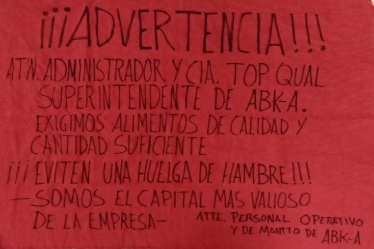 Ante las deficiencias y mal servicio que reciben de hotelería y alimentación que brinda la empresa Top Qual Food, en el Centro de Procesos Abkatún Alfa, al menos 500 obreros petroleros se pusieron en huelga de hambre, denunciando diversos actos de corrupción por parte de los supervisores de contrato para permitir estas anomalías.