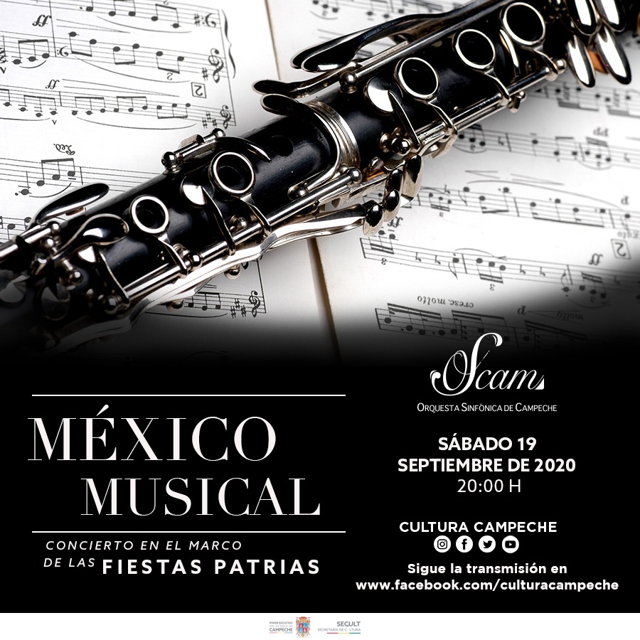Como parte de los festejos en el marco del 210 Aniversario del inicio de la lucha por la independencia de México, la Secretaría de Cultura del Poder Ejecutivo del Estado de Campeche (SECULT) invita al público campechano a disfrutar desde casa del tercer concierto de temporada de la Orquesta Sinfónica de Campeche (OSCAM) titulado “México musical”, un recorrido por los temas más significativos de la historia de la música mexicana del siglo XX.