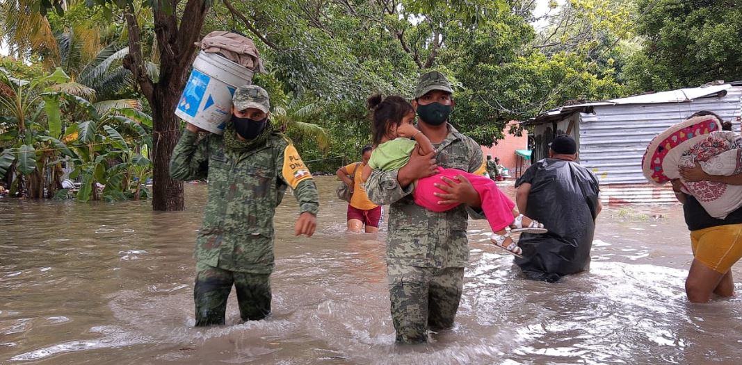 Personal del onceavo Regimiento de Caballaría Motorizado de la Secretaría de Marina, acudió a la Villa de Isla Aguada para aplicar el Plan DN-III en apoyo de los pobladores y pescadores de este sector, ante los efectos de la Tormenta Tropical Gamma, que ha provocado fuertes oleajes y aumentos en la marea.