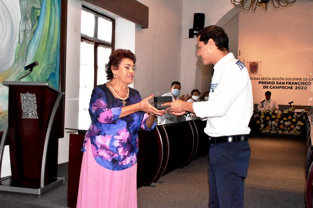 El Ayuntamiento de Campeche entregó el Premio San Francisco de Campeche 2020 a la maestra Paulina del Socorro Guerrero Ferrer, por su destacada trayectoria de más de 50 años como: maestra, promotora de la danza y su participación en actividades culturales y fiestas tradicionales en el municipio. Eliseo Fernández Montúfar, alcalde de Campeche, entregó la distinción luego de la sesión solemne de Cabildo.