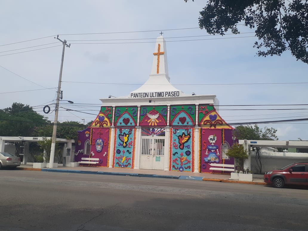 En tanto se espera la respuesta del Comité Municipal de Salud en relación a las medidas restrictivas ante la celebración del Día de Muertos, el Ayuntamiento de Ciudad del Carmen ha iniciado con los trabajos de limpieza, se ha instalado un mural de flores artificiales en el Panteón Último Paseo y se prepara un altar monumental en el Panteón Colonias.