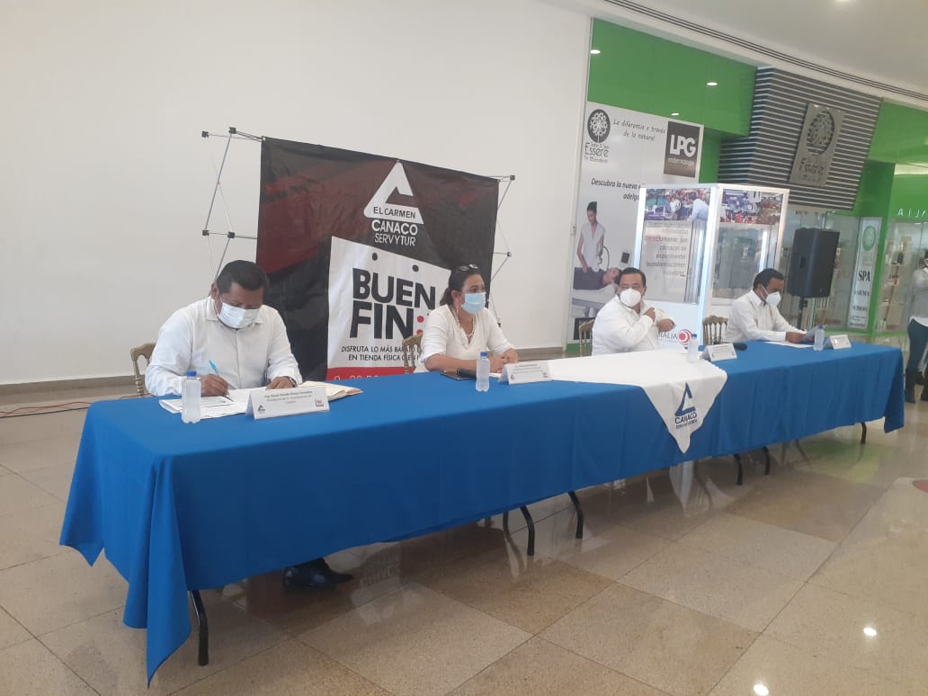 En una rueda de prensa, la presidente de la Cámara Nacional de Comercio, Servicios y Turismo de Carmen (Canaco-Servitur), Josefina Ojeda Martínez, invitó a empresarios a que se inscriban o registren, a través de una aplicación, en la edición del Buen Fin 2020 -la cual se llevará a cabo del 9 al 20 de noviembre- y de esta manera sean beneficiados por la derrama económica que este evento genera.