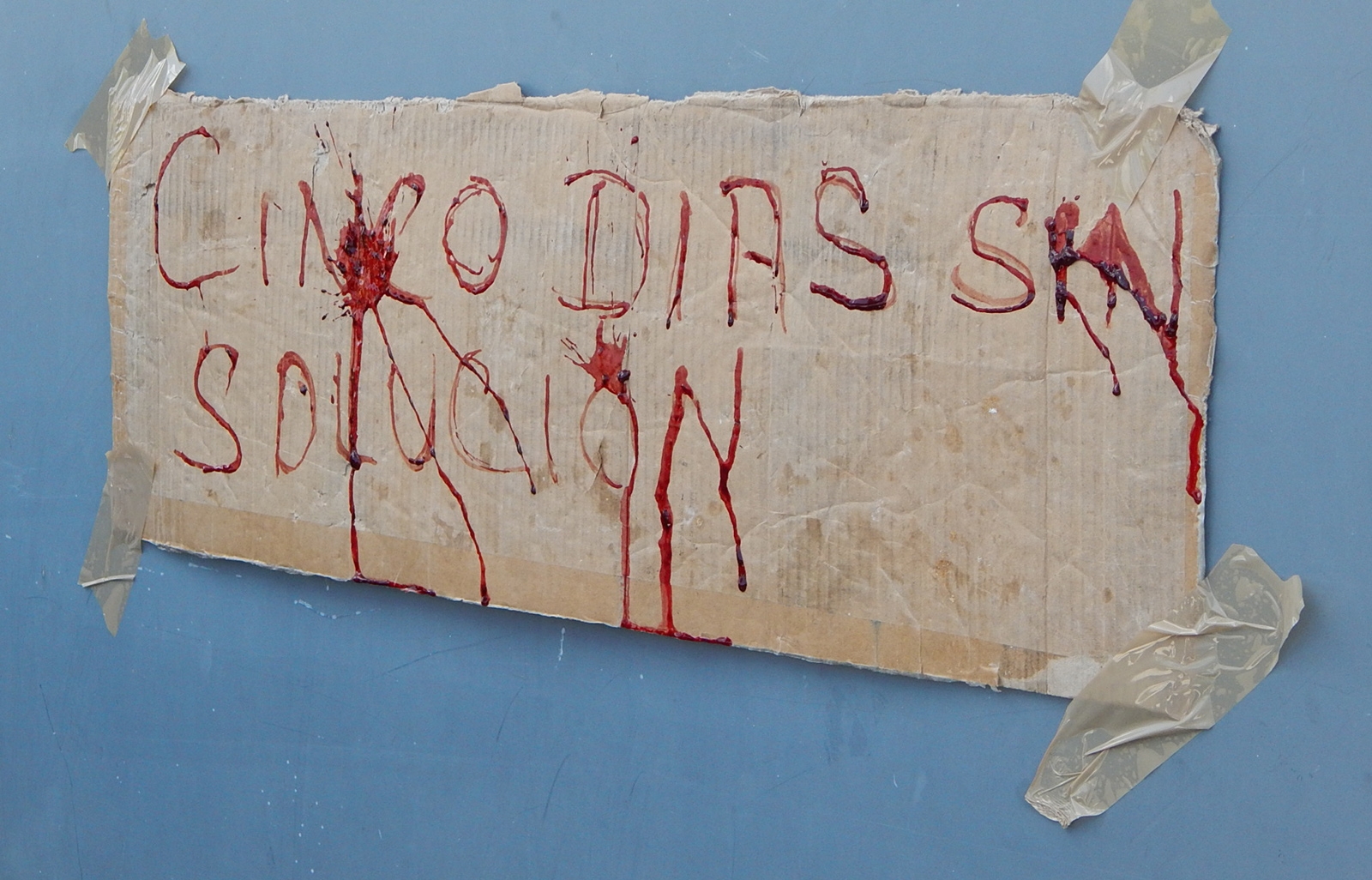 “Queremos trabajar señor gobernador”, decía uno de esos carteles escritos con sangre que escurre. “Exigimos las dos motos” decía el segundo, en que reclaman la devolución de los dos vehículos retenidos por la Policía Municipal de Calkiní sin orden judicial. “Exigimos trabajar libremente” decía la tercera cartulina, mientras que en otro cartón, con letra más grotesca y sangre ya casi coagulada, los manifestantes recordaron: “Cinco días sin solución”.
