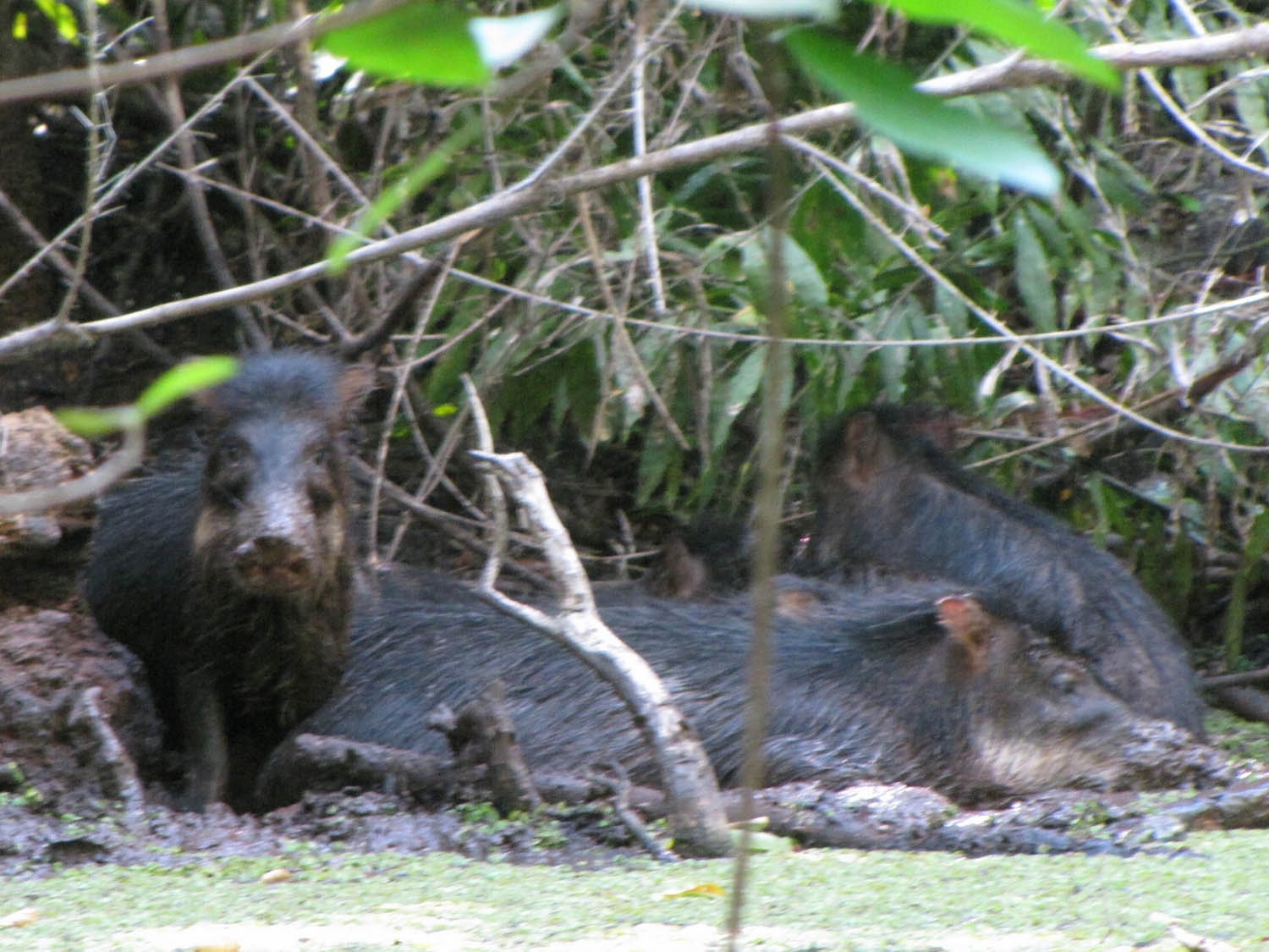 "La observación la realizamos cuando estábamos revisando trampas -cámara instaladas en aguadas, dentro de la reserva", expresó. Los pecaríes se encontraban bañándose y tomando agua.