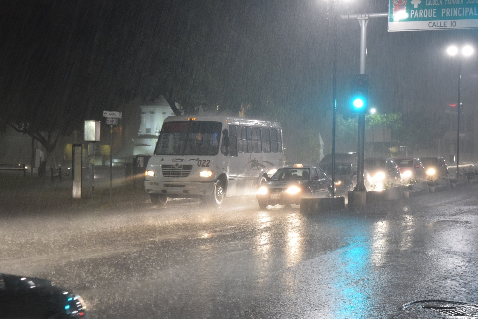 La fuerte lluvia que cayó la tarde de ayer sorprendió a muchos. En la imagen, aspectos del meteoro en el Circuito Baluartes, frente al parque de San Martí.