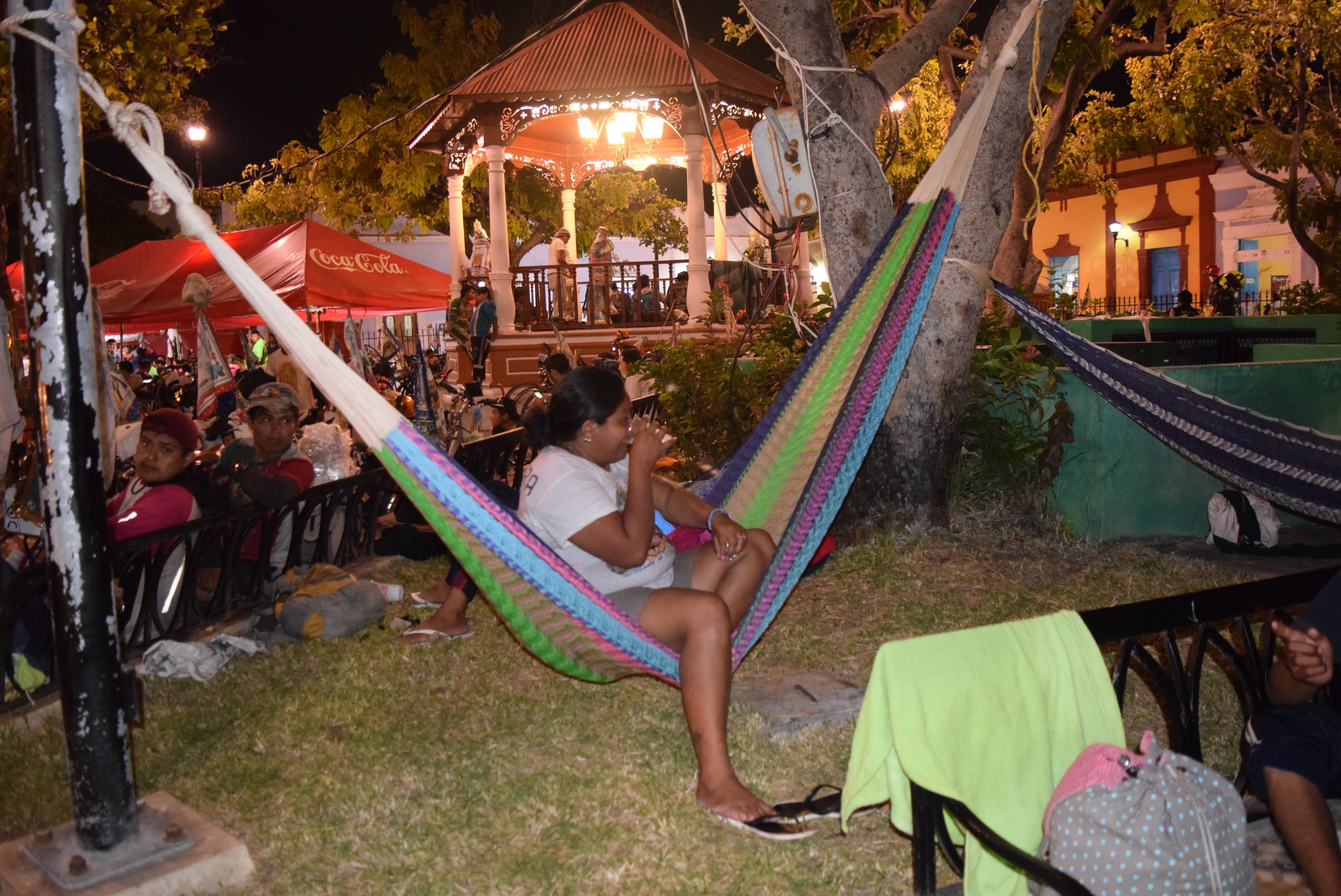 Decenas de peregrinos guadalupanos (antorchistas) llegan al parque del barrio de Guadalupe, donde se encuentra el santuario guadalupano. Ahí duermen y reciben alimento. Para algunos es el destino final; para otros es un descanso antes de continuar su recorrido.
