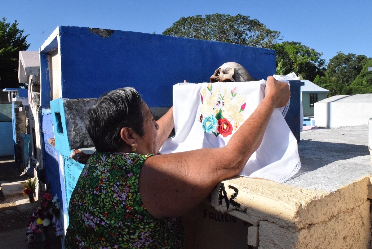 “Los ancestros mayas cada año bajaban la caja, limpiaban los huesos para luego amarrarla de nueva cuenta en alguna rama. Los huesos para nosotros son la presencia física de nuestros padres, tíos que en estos días de muertos, de los pibipollos, nos acompañan”.