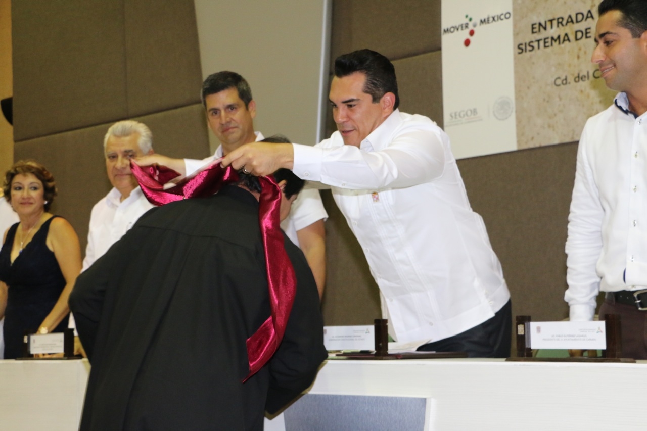 “En mi gobierno no concederemos ninguna posibilidad de impunidad. Quien haya violado o viole la ley tendrá la sanción que la misma señala”, afirmó el gobernador Alejandro Moreno Cárdenas durante la ceremonia de entrada en vigor del nuevo de sistema de justicia penal en Campeche, con lo cual la el estado se convierte en el décimo tercero en dar cumplimiento al mandato constitucional.
