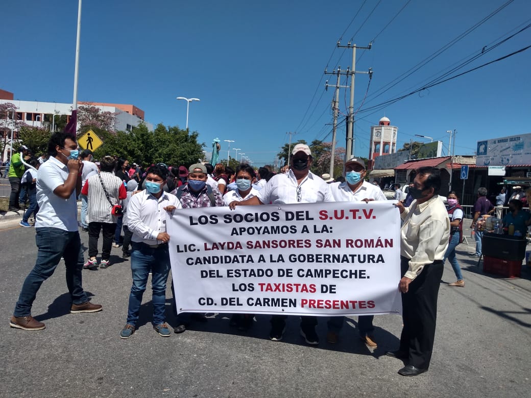 El pasado domingo circuló a través de las redes sociales, una fotografía en la que se muestra una lona con la leyenda: “los socios del S.U.T.V. apoyamos a la Lic. Layda Sansores San Román, candidata a la gubernatura del estado de Campeche. Los taxistas de Cd. del Carmen, presentes”.