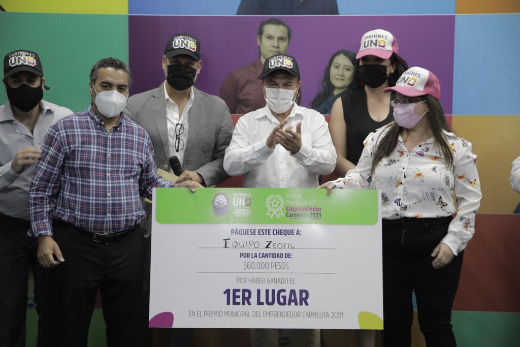 “Aquí en Carmen sí se les apoyó a los emprendedores y a los empresarios, somos un Ayuntamiento sensible a los problemas que enfrentan y solidarios en sus soluciones”, afirmó el alcalde Óscar Román Rosas González, al hacer entrega del Premio Municipal del Emprendedor Carmelita 2021, al equipo Zeofil.