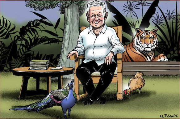 El pavorreal, la gallina, el tigre