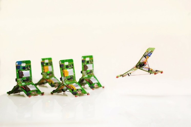 Estos robots de origami en forma de T de tres patas se llaman Tribots. Se pueden ensamblar en solo unos minutos con finas láminas de distintas materiales, lo que las hace adecuadas para la producción en masa. Totalmente autónomos y sin ataduras, los Tribots están equipados con sensores infrarrojos y de proximidad para fines de detección y comunicación. Podrían acomodar aún más sensores dependiendo de la aplicación.