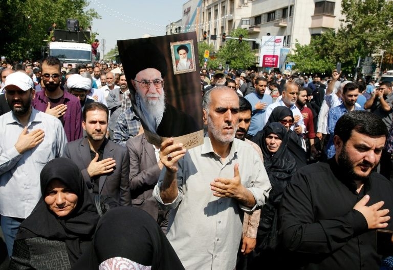 "La República islámica reconoce a Estados Unidos como el enemigo principal, junto al régimen sionista (Israel, ndlr), y con toda su fortaleza, es capaz de inducirlos al arrepentimiento" agrega Raissi antes de que la comitiva se dirija en dirección de "Meraj al-Shohada" ("Ascensión de los mártires"), un lugar de conmemoración del centro de la capital.