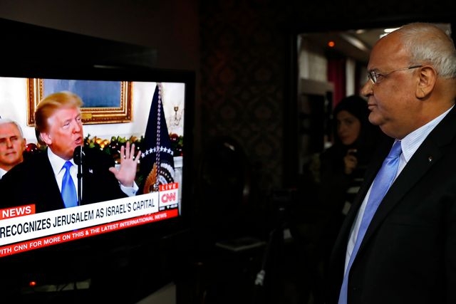 El secretario general de la Organización para la Liberación de Palestina (OLP), Saeb Erakat, declaró que Trump había "destruido" la llamada solución de dos Estados. .