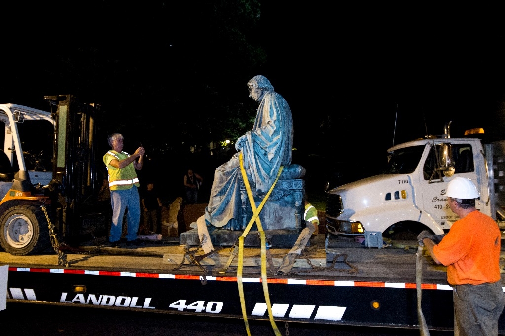 Las autoridades del estado de Maryland retiraron el viernes una estatua de un juez del siglo 19 que redactó un fallo a favor de la esclavitud, en el más reciente ejemplo de las medidas que se están tomando en Estados Unidos contra símbolos que han suscitado protestas con una carga racial.
